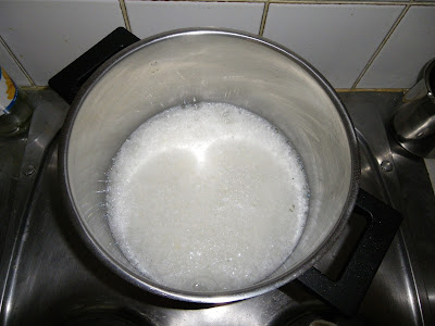 Po vychladnutí sa mi na povrchu oddelila dosť hustá pena, viď obrázok nižšie, penu som už trochu vmiešala do roztoku pre kontrast - je vidieť jej hrúbka, pena drží pevne tvar.