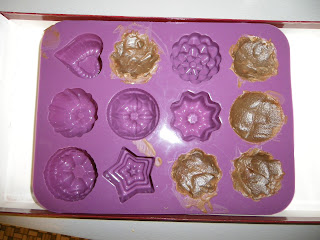 1) Vyliať čokoládovou hmotou dno a steny formičiek a nechať stuhnúť v chladničke