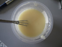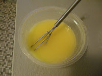 Takže, síce som si dobre vypočítala, koľko gramov NaOH a vody potrebujem dohromady na zmydelnenie olejov v skupine 2, ktorou som začala, avšak keď nastal čas ho rovnomerne rozdeliť, urobila som chybu, keď som vzala do rúk injekčnú striekačku - ideálny nástroj ak chcete pridávať malé množstvá NaOH do malého množstva oleja. Úplne blbý nástroj, keď zabudnete, že 25ml roztoku NaOH sa NEROVNÁ 25g roztoku NaOH! Primiešanie NaOH do vody nezväčší jej objem, ale len hustotu, takže bude ťažšia. Inak povedané, ak do 80g vody, čo činí 80 ml, pridáte 20g NaOH, tak nedostanete 100ml roztoku, ale cca 80ml 100gramového roztoku! Ak teda budete chcieť roztok rozdeliť na 5 rovnakých častí, nesmiete naberať 20 ml, pretože pri piatom oleji už nemáte čo naberať....