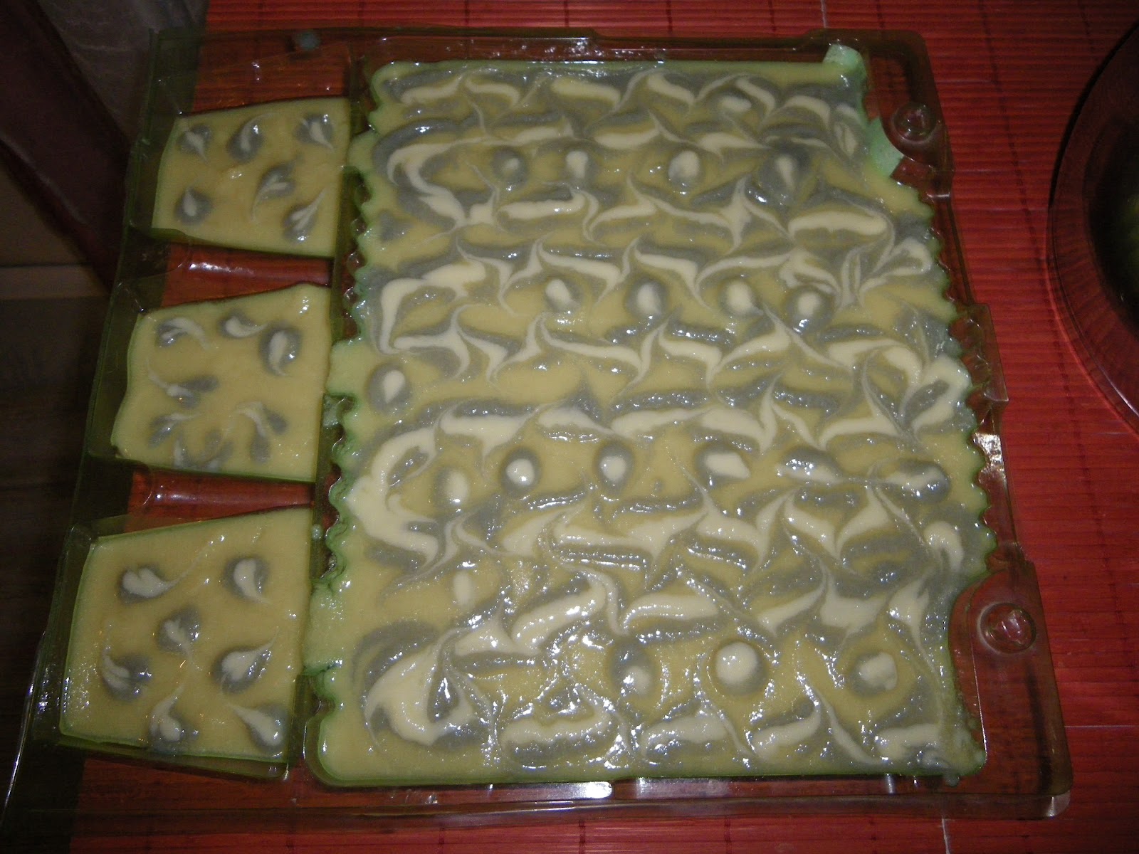 7) Základ som vyliala do formy a skúsila "páví" swirl (peacock swirl):