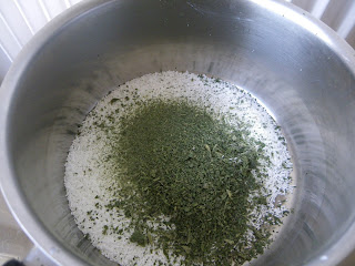 Ďalšia zložka, ktorú som pridala bol hydrolyzovaný ryžový proteín (takisto z aroma-zone.fr), určený presne na reparáciu vlasov. No a nakoniec - som pridala podrvenú pomletú sušenú žihľavu (vlastnoručne nazbieranú), a to kvôli jej dobrému účinku proti vypadávaniu vlasov. Celé som to navoňala jazmínom a citrónovou trávou. Tak sa mi to nejako hodilo a ono je to fakt super kombinácia!