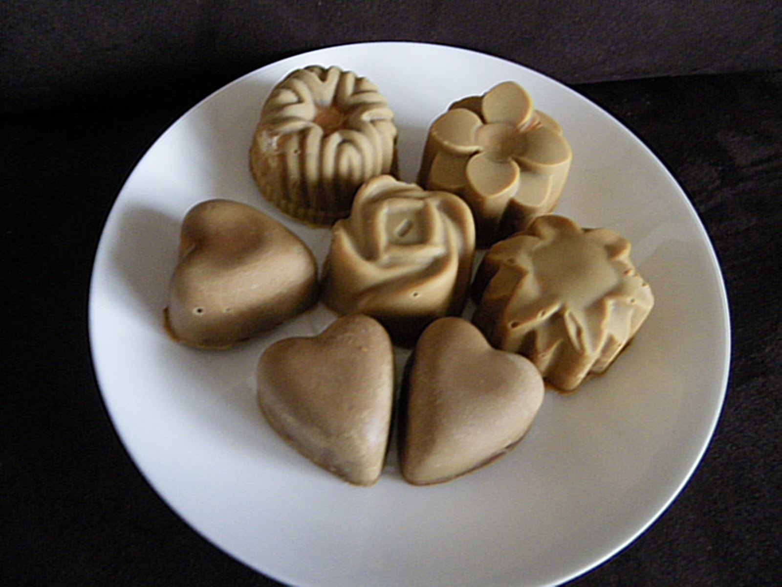 Všetky tieto kreácie sú ale mydlá pevné, buď hnedé alebo dvojfarebné (hnedo-biele, hnedo-zelené) - skúste si vygoogliť obrázky "after eight soap"...